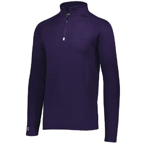 Holloway Men's 3D Regulate Lightweight Pullover 3D Regulate lightweight knit, 94% Polyester/6% Spandex tonal heathered brushed Waffle textured back for controlled warmth and wicking. 3D Regulate knit fabric rolls over to the front of collar for softness and comfort. Wicks Moisture. Woven label. Quarter zip pullover style and reflective metallic accent and zipper garage. Raglan sleeves for maximum mobility. 100% Lightweight matte woven Polyester zippered valuables pocket on wearers right side. Media port inside zippered valuables pocket for earbud cord. Open bottom.