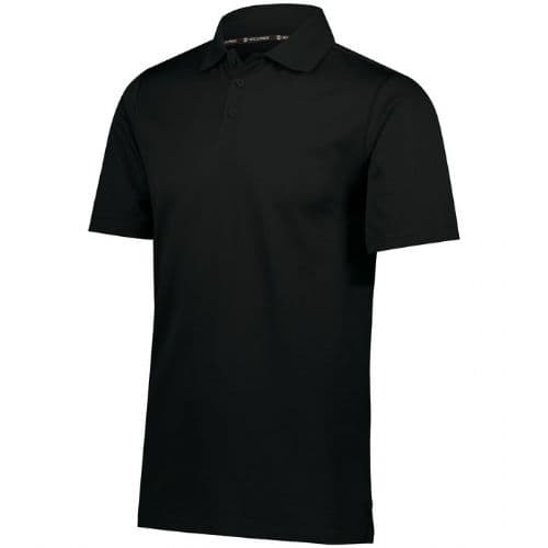 Holloway Men's Prism Polo Dry-Excel™ 4.8 ounce 100% polyester wicking honeycomb knit. UV SafeShield protects against the sun with 50+ UPF. Wicks moisture. Tagless label. Rib-knit collar with engineered mesh construction for breathability. Three button placket. Set-in sleeves with angled shoulder seam for mobility and comfort. Side vents.