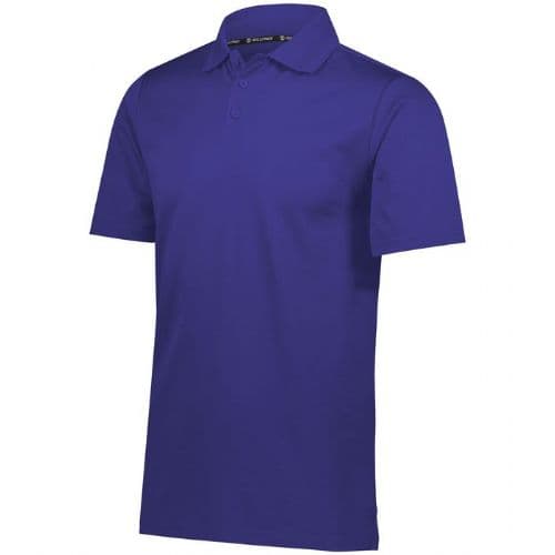 Holloway Men's Prism Polo Dry-Excel™ 4.8 ounce 100% polyester wicking honeycomb knit. UV SafeShield protects against the sun with 50+ UPF. Wicks moisture. Tagless label. Rib-knit collar with engineered mesh construction for breathability. Three button placket. Set-in sleeves with angled shoulder seam for mobility and comfort. Side vents.