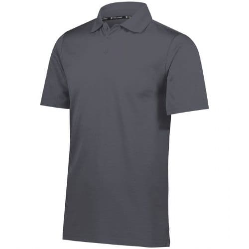 Holloway Men's Prism Polo Dry-Excel™ 4.8 ounce 100% polyester wicking honeycomb knit. UV SafeShield protects against the sun with 50+ UPF. Wicks moisture. Tagless label. Rib-knit collar with engineered mesh construction for breathability. Three button placket. Set-in sleeves with angled shoulder seam for mobility and comfort. Side vents.