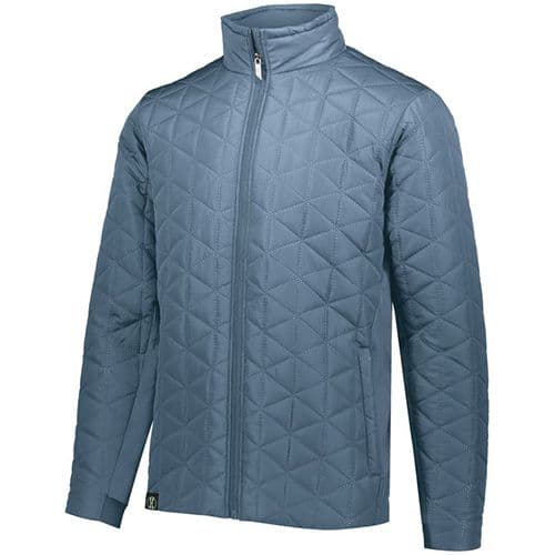 Holloway Repreve® Eco Jacket 100% polyester MicroTec woven face with durable water-repellent finish to keep you dry. Made from Repreve® recycled polyester quilting for lightweight warmth. Weld engineered quilting that's decoration friendly. 78% polyester/22% spandex inserts, peached for softness. Woven label. Front zipper with antique nickel zipper pull and storm flap. Media port inside. Zippered valuables pocket. Front zippered pockets. Half-elastic cuffs. Dropped tail.