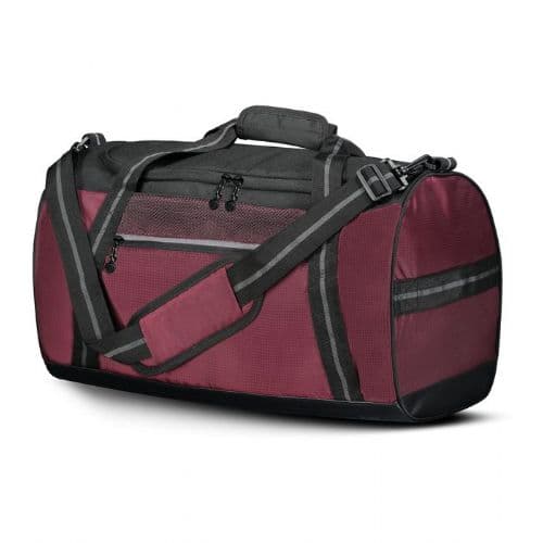 Holloway Rival Duffel Bag 100% polyester microcheck. 300-denier nylon top panel. Heavyweight coated vinyl on bottom of bag. Water-resistant. Zippered main compartment has large U-shaped opening with two zipper pulls. Zippered front pocket with organizer and key hook. Zippered shoe compartment with side vents and external mesh pocket. Padded carry handle at top. Adjustable and detachable shoulder strap with comfortable padded handle. Side handle. Internal zippered mesh valuables pocket. 20”W x 10.5”H x 10.5”D.