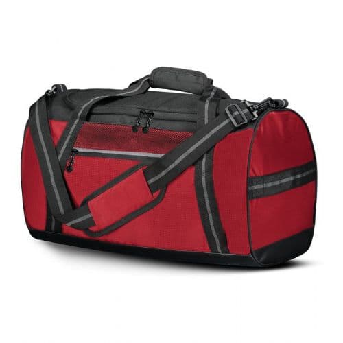 Holloway Rival Duffel Bag 100% polyester microcheck. 300-denier nylon top panel. Heavyweight coated vinyl on bottom of bag. Water-resistant. Zippered main compartment has large U-shaped opening with two zipper pulls. Zippered front pocket with organizer and key hook. Zippered shoe compartment with side vents and external mesh pocket. Padded carry handle at top. Adjustable and detachable shoulder strap with comfortable padded handle. Side handle. Internal zippered mesh valuables pocket. 20”W x 10.5”H x 10.5”D.