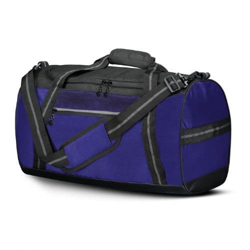 Holloway Rival Duffel Bag 100% polyester microcheck. 300-denier nylon top panel. Heavyweight coated vinyl on bottom of bag. Water-resistant. Zippered main compartment has large U-shaped opening with two zipper pulls. Zippered front pocket with organizer and key hook. Zippered shoe compartment with side vents and external mesh pocket. Padded carry handle at top. Adjustable and detachable shoulder strap with comfortable padded handle. Side handle. Internal zippered mesh valuables pocket. 20”W x 10.5”H x 10.5”D.