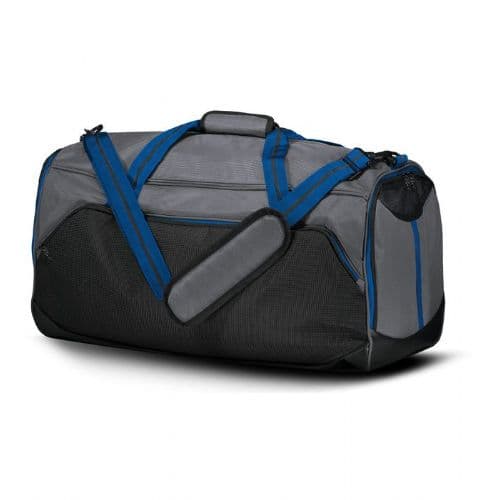 Holloway Rivalry Backpack Duffel Bag 100% polyester ripstop microcheck with durable dobby side. Heavyweight coated vinyl on bottom of bag. Water-resistant. Zippered main compartment with two zipper pulls. Zippered front pocket with organizer and key hook. Zippered shoe compartment with mesh vent. Padded carry handle at top. Padded shoulder straps transform to backpack. Side handle.