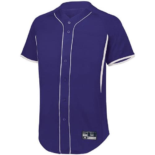 Holloway Youth Full Button Baseball Jersey Dry-Excel™ 100% wicking polyester diamond knit with true hue technology™ that helps prevent dye migration. Dry-Excel™ 100% wicking warp mesh inserts and back yoke with true hue technology™. Wicks moisture. Pad print label. Outside locker label. Full-button jersey. Buttons spaced for easy embellishment. Contrast color inserts and piping. Raglan sleeves. Fishtail bottom.