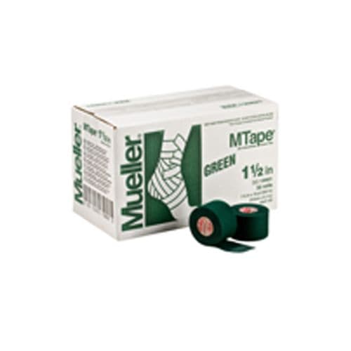 Mueller® MTape is a top-quality athletic tape ideal for all sports medicine applications. Easy to tear and unwinds to the core for fast and effective taping. Provides firm support and compression. Rolls are made of hospital-grade, 100% cotton backcloth with a zinc oxide based adhesive. High tensile strength, excellent tackiness and conformability. Colorfast dyes will not bleed. 1.5" X 10YD, 32 rolls.