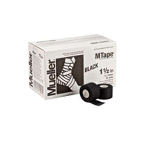 Mueller® MTape is a top-quality athletic tape ideal for all sports medicine applications. Easy to tear and unwinds to the core for fast and effective taping. Provides firm support and compression. Rolls are made of hospital-grade, 100% cotton backcloth with a zinc oxide based adhesive. High tensile strength, excellent tackiness and conformability. Colorfast dyes will not bleed. 1.5" X 10YD, 32 rolls.