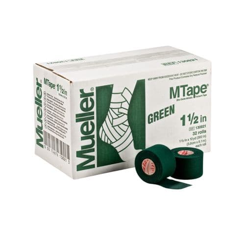 Mueller® MTape 1.5" X 10YD, 32 rolls Mueller® MTape is a top-quality athletic tape ideal for all sports medicine applications. Easy to tear and unwinds to the core for fast and effective taping. Provides firm support and compression. Rolls are made of hospital-grade, 100% cotton backcloth with a zinc oxide based adhesive. High tensile strength, excellent tackiness and conformability. Colorfast dyes will not bleed. 1.5" X 10YD, 32 rolls