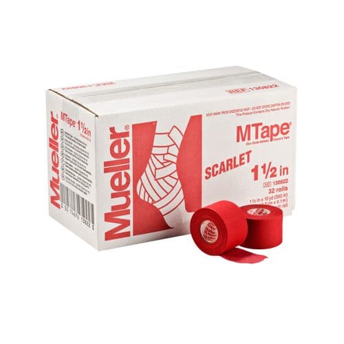 Mueller® MTape 1.5" X 10YD, 32 rolls Mueller® MTape is a top-quality athletic tape ideal for all sports medicine applications. Easy to tear and unwinds to the core for fast and effective taping. Provides firm support and compression. Rolls are made of hospital-grade, 100% cotton backcloth with a zinc oxide based adhesive. High tensile strength, excellent tackiness and conformability. Colorfast dyes will not bleed. 1.5" X 10YD, 32 rolls