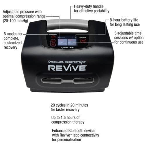 The Mueller® M4 console connects to all REVIVE™ garments to provide air flow to begin treatments. The M4 console has 7-in-1 features including smart technology for full release and maximum lymphatic uptake, bluetooth connectivity, multiple modes, overlapping chambers, fast cycles for more flushes, and up to 8 hours of battery life. This device is made from clean, medical-grade materials. M4 console only. Backed by a 90-day risk-free trial.