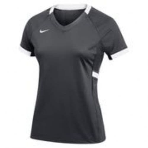 Nike Girl's Elite Short Sleeve Volleyball Jersey Nike Dri-FIT technology moves sweat away from your skin for quicker evaporation, helping you stay dry and comfortable. Stretchy fabric—and panels with extra stretch at the sides—lets you lay out for the save or dig deep with limited restrictions and distractions. 89% POLYESTER 11% SPANDEX.