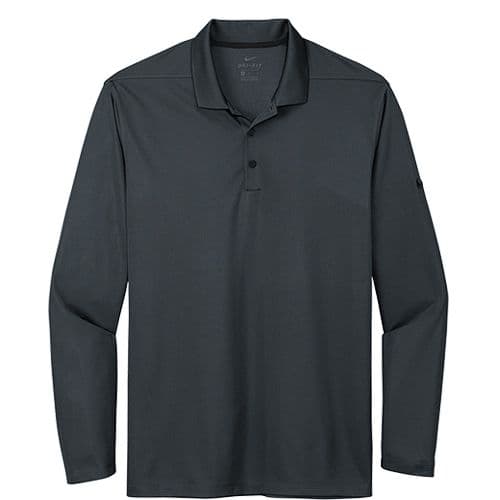 Nike Men's Dri-FIT Micro Pique 2.0 Long Sleeve Polo The best-selling Nike polo just got better. Still engineered from soft, stretchable micro pique fabric, the Nike Dri-FIT Micro Pique 2.0 Polo is now 5 styles strong. It delivers unparalleled comfort with Dri-FIT moisture management technology and features updated design lines and fit. Flat knit collar and three-button placket. Rolled-forward shoulder seams, open hem sleeves and open hem. White or black pearlized buttons selected to complement the shirt color. Contrast Swoosh logo is embroidered on the left sleeve. Made of 4.3-ounce, 100% polyester Dri-FIT fabric.
