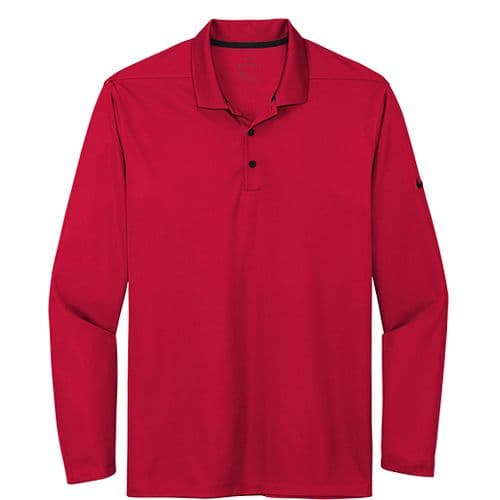 Nike Men's Dri-FIT Micro Pique 2.0 Long Sleeve Polo The best-selling Nike polo just got better. Still engineered from soft, stretchable micro pique fabric, the Nike Dri-FIT Micro Pique 2.0 Polo is now 5 styles strong. It delivers unparalleled comfort with Dri-FIT moisture management technology and features updated design lines and fit. Flat knit collar and three-button placket. Rolled-forward shoulder seams, open hem sleeves and open hem. White or black pearlized buttons selected to complement the shirt color. Contrast Swoosh logo is embroidered on the left sleeve. Made of 4.3-ounce, 100% polyester Dri-FIT fabric.