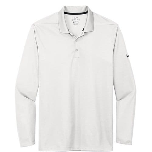 Nike Men's Dri-FIT Micro Pique 2.0 Long Sleeve Polo The best-selling Nike polo just got better. Still engineered from soft, stretchable micro pique fabric, the Nike Dri-FIT Micro Pique 2.0 Polo is now 5 styles strong. It delivers unparalleled comfort with Dri-FIT moisture management technology and features updated design lines and fit. Flat knit collar and three-button placket. Rolled-forward shoulder seams, open hem sleeves and open hem. White or black pearlized buttons selected to complement the shirt color. Contrast Swoosh logo is embroidered on the left sleeve. Made of 4.3-ounce, 100% polyester Dri-FIT fabric.