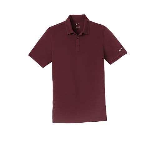 Nike Men's Dri-FIT Players Modern Fit Polo This polo delivers timeless style and performance with ultra-smooth double pique and Dri-FIT moisture management technology. Design features include a three-button placket, streamlined self-fabric collar and open hem sleeves. A contrast metallic silver heat transfer Swoosh design trademark is on the left sleeve. Made of 6-ounce, 100% polyester Dri-FIT fabric. Modern fit is slightly tailored through the chest, arms and waist.