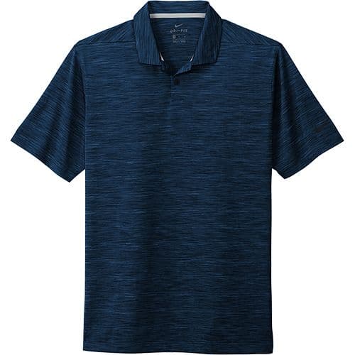 Nike Men's Dri-FIT Vapor Space Dyed Polo A modern striated space dyed pattern combined with unparalleled Dri-FIT moisture management technology makes this contemporary polo fashionable and functional. Features a self-fabric collar and two-button placket. Rolled-forward shoulder seams, open hem sleeves and open hem. A contrast heat transfer Swoosh logo is on the left sleeve. Made of 4.7-ounce, 100% polyester Dri-FIT fabric.