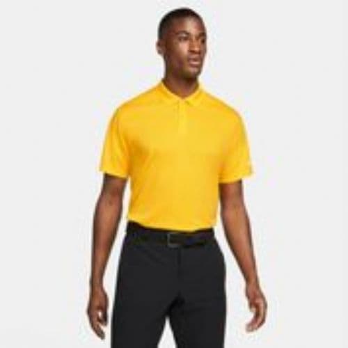Nike Men's Dry Victory Solid OLC Polo Nike Dri-FIT technology moves sweat away from your skin for quicker evaporation, helping you stay dry and comfortable. Shoulder seams are rolled forward so you can fully power through your swing. Collar is ribbed to help prevent curling. Swoosh is on the left sleeve so you can easily apply custom graphics like a logo or a crest to the chest. 100% POLYESTER.
