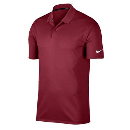 Nike Men's Dry Victory Solid OLC Polo Nike Dri-FIT technology moves sweat away from your skin for quicker evaporation, helping you stay dry and comfortable. Shoulder seams are rolled forward so you can fully power through your swing. Collar is ribbed to help prevent curling. Swoosh is on the left sleeve so you can easily apply custom graphics like a logo or a crest to the chest. 100% POLYESTER.