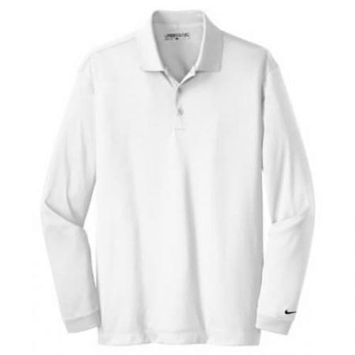 Nike Men's Long Sleeve Dri-FIT Stretch Tech Polo Long sleeves elevate this polo to another level of sophistication while Dri-FIT moisture management technology adds unparalleled performance. Stretch fabric for hassle-free swinging motion. Flat knit collar and cuffs. Heat transfer label for tag-free comfort. Three-button placket. Dyed-to-match buttons on White, Black and Midnight Navy. White buttons on Varsity Red, Anthracite and Blue Sapphire. The contrast Swoosh design trademark is embroidered on the lower left sleeve. Side vents. Made of 5-ounce, 100% polyester Dri-FIT fabric.