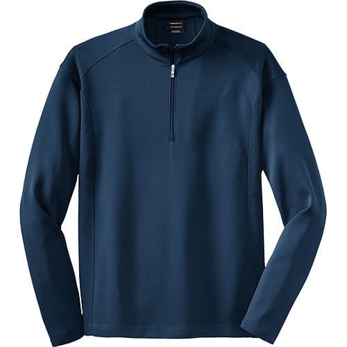 Nike Men's Sport Pullover An excellent choice for layering, this cover-up has a subtle texture and a soft hand. The design features a zip-through collar, open cuffs and an open hem. The contrast Swoosh design trademark is embroidered on the back of the neck. Made of 9.75-ounce, 61/39 cotton/polyester.