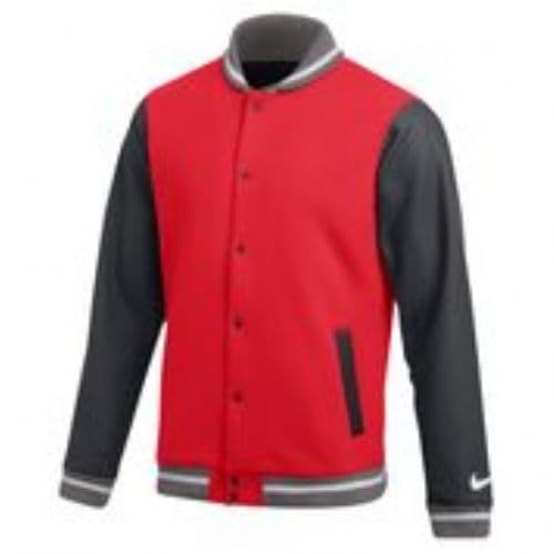 Nike Men's Stock Letterman Jacket Rep your school with an embroidered logo on the right chest and your team colors. Fabric at the body and sleeves is more lightweight than traditional materials so it's easy to wear whenever, wherever. 91% POLYESTER 9% ELASTANE.