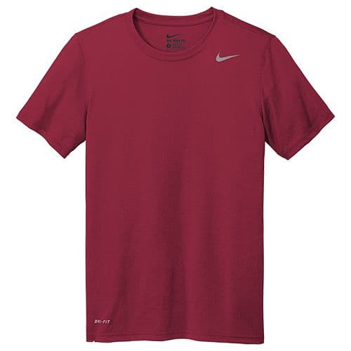 Nike Men's Team Legend Short Sleeve Tee This is the stuff of which legends are made. The Team rLegend Tee is built from sustainable recycled polyester and powered by Dri-FIT technologyso youll get peak performance with a lower environmental impact. Neck tape for durability. Heat-transfer label for tag-free comfort. A contrast heat transfer Swoosh logo on left chest. Made of 4-ounce, 100% recycled polyester jersey.