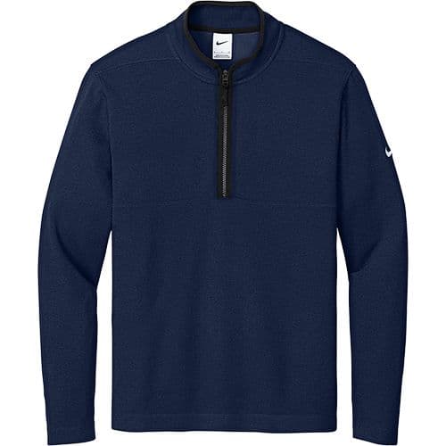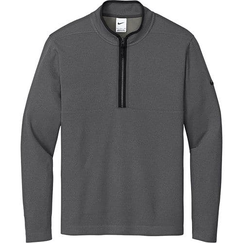 Nike Men's Textured 1/2-Zip Cover-Up This slightly brushed, textured, breathable cover-up is a comfortable layering option for the office or afterhours. The design includes a notched, zip-through collar, contrasting black Vislon ® zipper and an open drop tail hem. The contrast Swoosh logo is embroidered on the left sleeve. Made of 6.3-ounce, 100% polyester fabric.