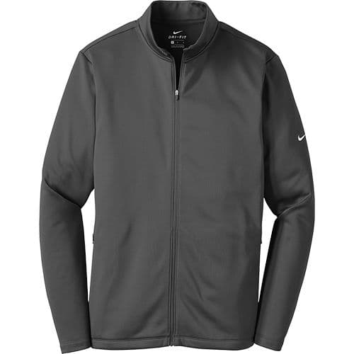 Nike Men's Therma-FIT Full-Zip Fleece Jacket Designed to help keep you warm during cold-weather workouts, this breathable Nike Therma-FIT style manages moisture to perform. It’s designed with a zip-through collar, reverse coil zippers, front zippered pockets and open cuffs. The contrast heat transfer Swoosh design trademark is on the left sleeve. Made of 7-ounce, 100% polyester Therma-FIT fabric.
