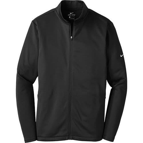 Nike Men's Therma-FIT Full-Zip Fleece Jacket Designed to help keep you warm during cold-weather workouts, this breathable Nike Therma-FIT style manages moisture to perform. It’s designed with a zip-through collar, reverse coil zippers, front zippered pockets and open cuffs. The contrast heat transfer Swoosh design trademark is on the left sleeve. Made of 7-ounce, 100% polyester Therma-FIT fabric.