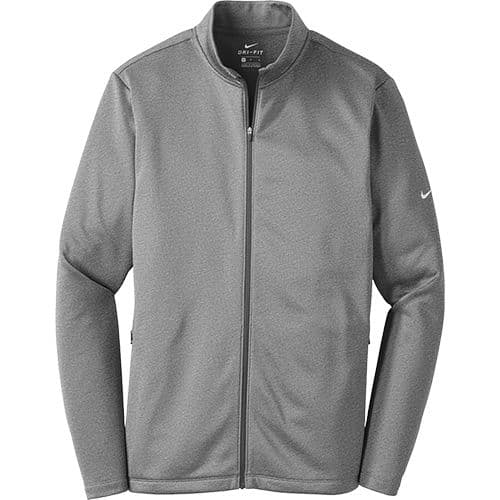 Nike Men's Therma-FIT Full-Zip Fleece Jacket Designed to help keep you warm during cold-weather workouts, this breathable Nike Therma-FIT style manages moisture to perform. It’s designed with a zip-through collar, reverse coil zippers, front zippered pockets and open cuffs. The contrast heat transfer Swoosh design trademark is on the left sleeve. Made of 7-ounce, 100% polyester Therma-FIT fabric.
