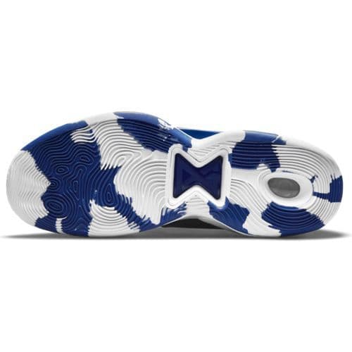 The outsole uses a multidirectional tread pattern to provide stop-and-go traction and control on the court.