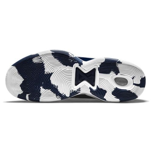 The outsole uses a multidirectional tread pattern to provide stop-and-go traction and control on the court.