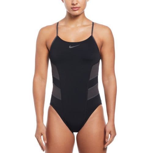 Bring your team style into the new decade with the Nike Vex Cut-Out One Piece Swimsuit! Made out of the superb Hydrastrong fabric, this suit provides long-lasting durability and chlorine resistance you can count on. Skinny straps offer light support and are ideal for lower-impact activity. Minimal bottom coverage and an exposed back ensure great range of motion, comfort and style. Additionally, this Nike women's one piece swimsuit is fully lined for better fit and support.
