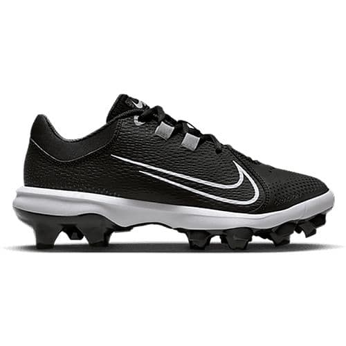 Nike Women's Hyperdiamond 4 Pro MCS Shoes Leather in the upper with molded details adds durability. Thick heel counter helps prevent wear and tear. Rubber outsole uses Nike Grind material, which contains recycled content. Molded studs provides traction that flexes with your step.
