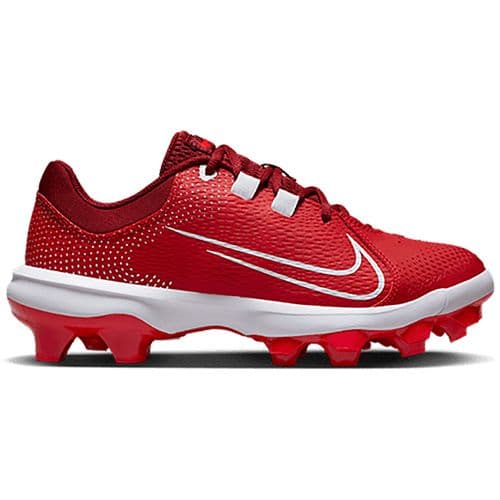 Nike Women's Hyperdiamond 4 Pro MCS Shoes Leather in the upper with molded details adds durability. Thick heel counter helps prevent wear and tear. Rubber outsole uses Nike Grind material, which contains recycled content. Molded studs provides traction that flexes with your step.