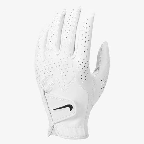 Nike Women's Tour Classic 4 Golf Glove (LH) Made with soft leather, this left-handed golf glove is designed for an excellent fit and premium durability. Extra breathable with more perforations at the fingers and the back of the hand than previous versions, this glove is comfortable enough for long days on the green.