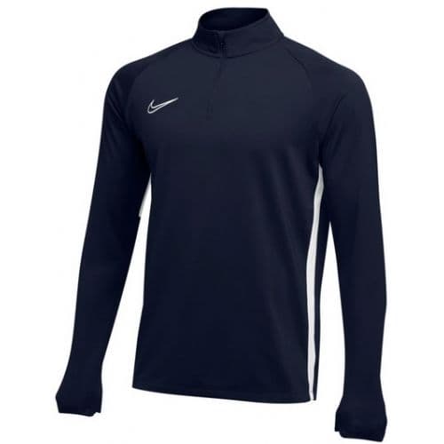 Nike Youth Academy19 Drill LS Top Dri-FIT technology helps you stay dry, comfortable and focused. Brushed body fabric provides a warm, comfortable feel. Stretchy raglan sleeves move easily with you. Invisible Thumb Loops remain hidden when not in use. Mesh side stripes add breathability. 1/4-Length zipper lets you dial in your ventilation. Outline Swoosh design trademark is embroidered.