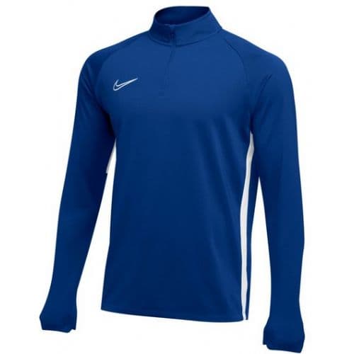 Nike Youth Academy19 Drill LS Top Dri-FIT technology helps you stay dry, comfortable and focused. Brushed body fabric provides a warm, comfortable feel. Stretchy raglan sleeves move easily with you. Invisible Thumb Loops remain hidden when not in use. Mesh side stripes add breathability. 1/4-Length zipper lets you dial in your ventilation. Outline Swoosh design trademark is embroidered.