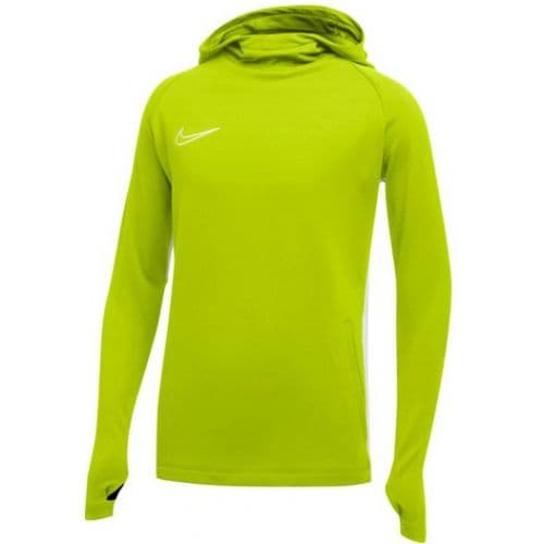 Nike Youth Academy19 Pullover Hoodie Dri-FIT technology helps you stay dry, comfortable and focused. Fitted hood with drawcord provides streamlined coverage. Invisible Thumb Loops stay hidden when not in use. Raglan sleeves eliminate the shoulder seam. Side pockets provide a place to warm your hands. Outline Swoosh design trademark is embroidered. 100% Polyester.