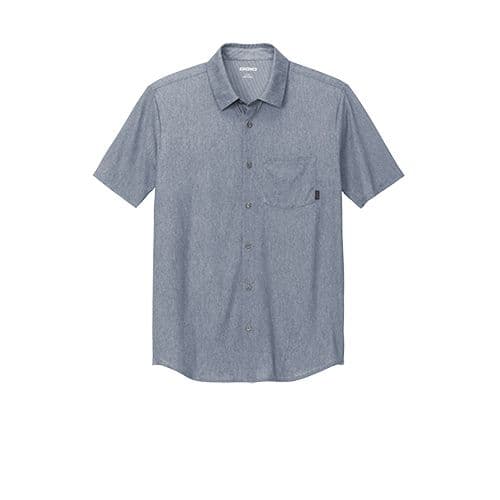 Extend your casual wardrobe with this OGIO knit shirt that has mechanical stretch. The heathered fabric has a subtle pinstripe effect thats evident in the inside collar, locker loop and at the side seam gussets.