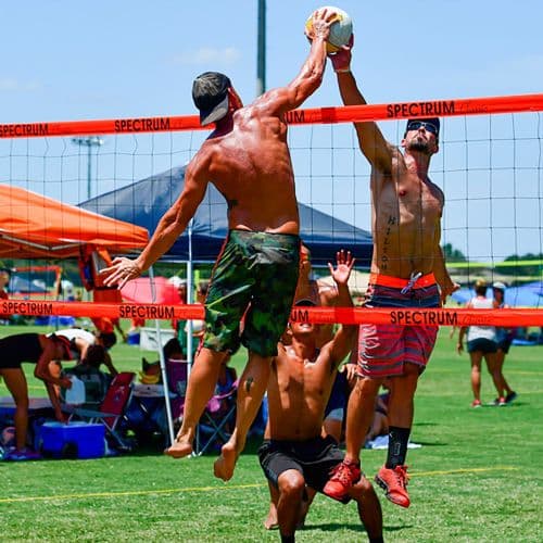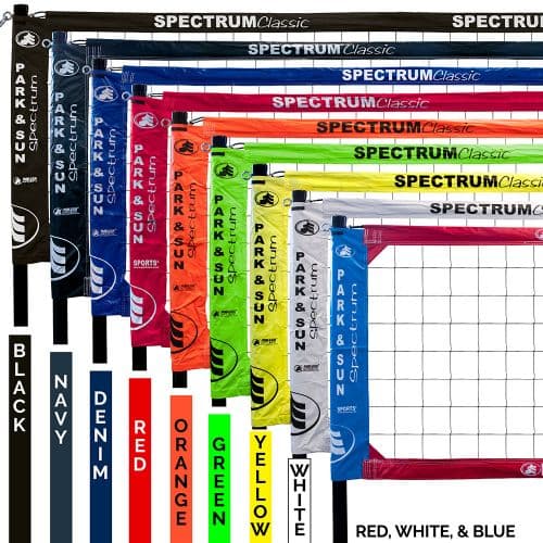 The Spectrum Classic features the pioneering Spectrum Sleeved slip-on net, that measures the regulation volleyball size of 32' L x 3' H, and is pre-attached to the poles. Highly visible 3’’ top and bottom net binding with reinforced corners and 6" side sleeves, which distributes the net tension evenly from the top to the bottom of the net.