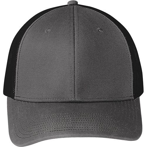 • Fabric: 100% cotton twill front panels and bill (Solids); 65% Polyester, 35% Cotton Twill front panels and bill (Heathers); 100% polyester mesh mid and back panels