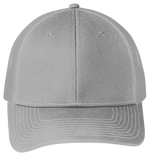 • Fabric: 100% cotton twill front panels and bill (Solids); 65% Polyester, 35% Cotton Twill front panels and bill (Heathers); 100% polyester mesh mid and back panels