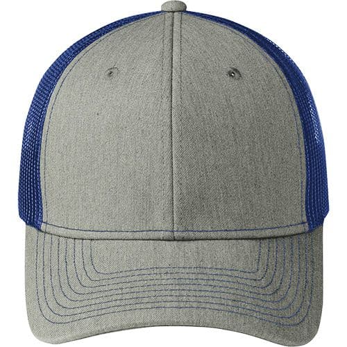 • Fabric: 100% cotton twill front panels and bill (Solids); 65% Polyester, 35% Cotton Twill front panels and bill (Heathers); 100% polyester mesh mid and back panels