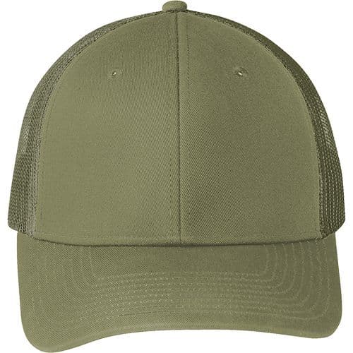 • Fabric: 100% cotton twill front panels and bill (Solids); 65% Polyester, 35% Cotton Twill front panels and bill (Heathers); 100% polyester mesh mid and back panels