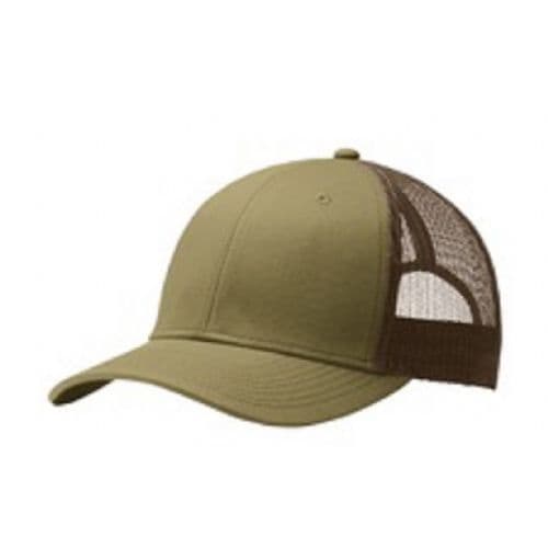 • Fabric: 100% cotton twill front panels and bill (Solids); 65% Polyester, 35% Cotton Twill front panels and bill (Heathers); 100% polyester mesh mid and back panels