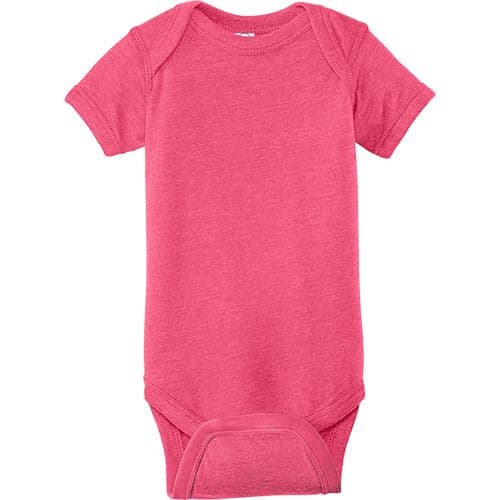 Soft and lightweight, this bodysuit has a heathered pattern in a variety of colors for a cool, casual look and retro feel. Lap shoulders make for easier changing.