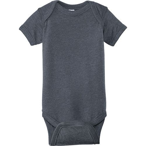 Soft and lightweight, this bodysuit has a heathered pattern in a variety of colors for a cool, casual look and retro feel. Lap shoulders make for easier changing.