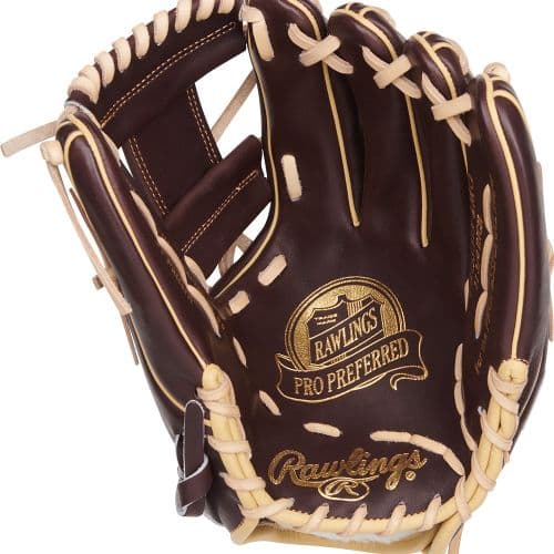 Rawlings 2025 Pro Preferred Series 11.75-Inch Baseball Glove RHT Dominate with the game's best leather and grab this 11.75-inch Pro Preferred infield glove. Crafted with flawless kip leather known for its tight grain and smooth feel, the Pro Preferred lineup is made with Big League quality in mind. That's why hundreds of pros turn to these gloves every season! This infield model features a 31 pattern, which is preferred by infielders who need to make quick transfers from any angle the ball takes them. The Pro-I web helps absorb the impact of any ball while being able to maintain quick transitions for smooth plays all around. Additionally, this glove features a beautiful mocha shell that pairs nicely with its camel tan laces and stitching. Not to mention the coordinating black on camel Rawlings patch to give it that extra sense of unity. Rawlings Pro Preferred gloves represent the gold standard in premium baseball gloves, and you can feel the difference when you put one on. See why the game's best turns to this Pro Preferred infield glove on gameday—get yours!